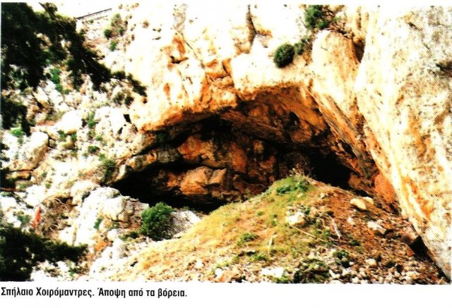 Choiromantres Cave is located on the south slope of Pothia, below the monastery of Agioi Pantes. Neolithic findings and shells which date up to the early Christian era were discovered within and around the cave. Their presence testifies to the continuous habitation and the ritual use of site. Unfortunately, the form of the cave was altered after the collapse of the dome.